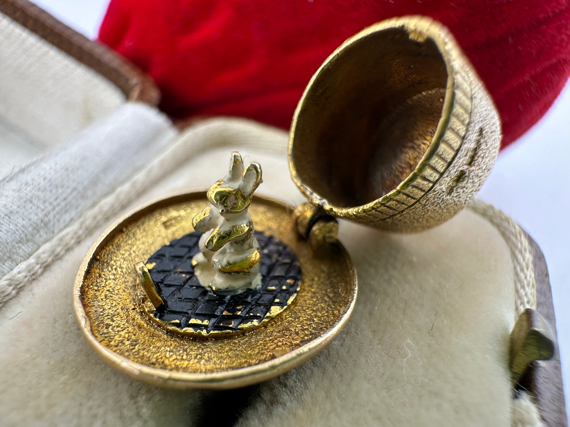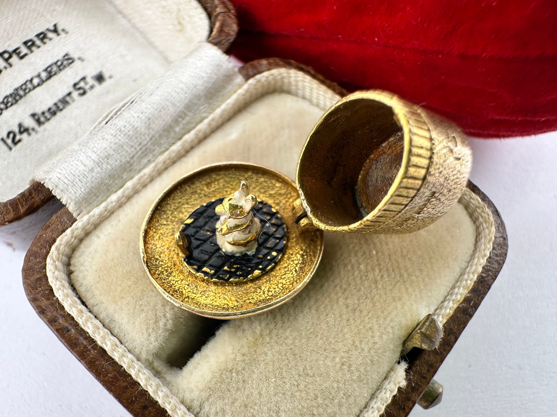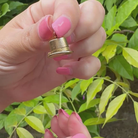 Vintage 9ct Gold Articulated Magicians hat charm, with enamel rabbit