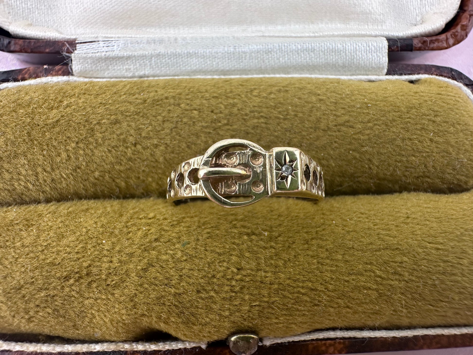 Vintage 9ct Gold Buckle ring with a star set accent diamond.