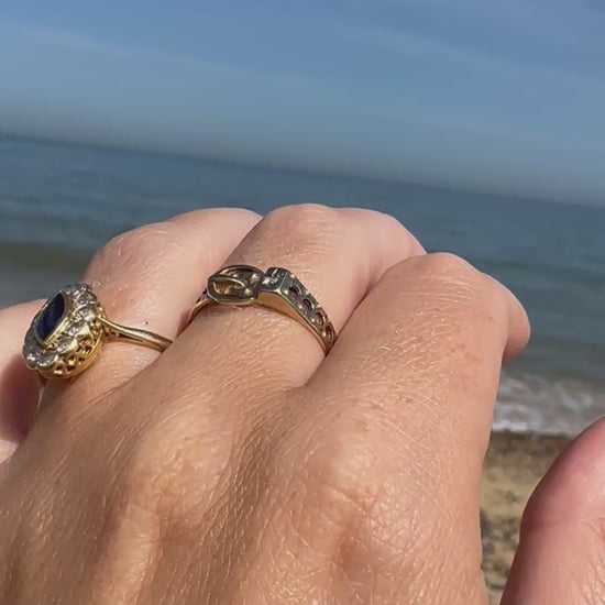 Buckle rings are always a good idea they look fabulous on their own but work so well as a stacker for your ring stack. This one has amazing details and texture plus I love the negative space created by the cut outs. The little star set diamond is a super sweet addition.