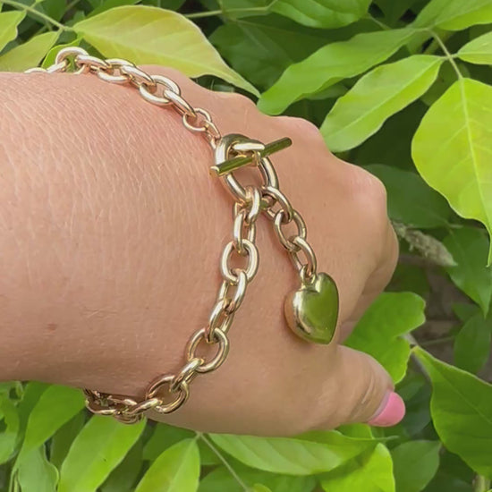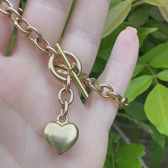 Vintage 9ct Gold Cable bracelet with heart toggle and heart t-bar