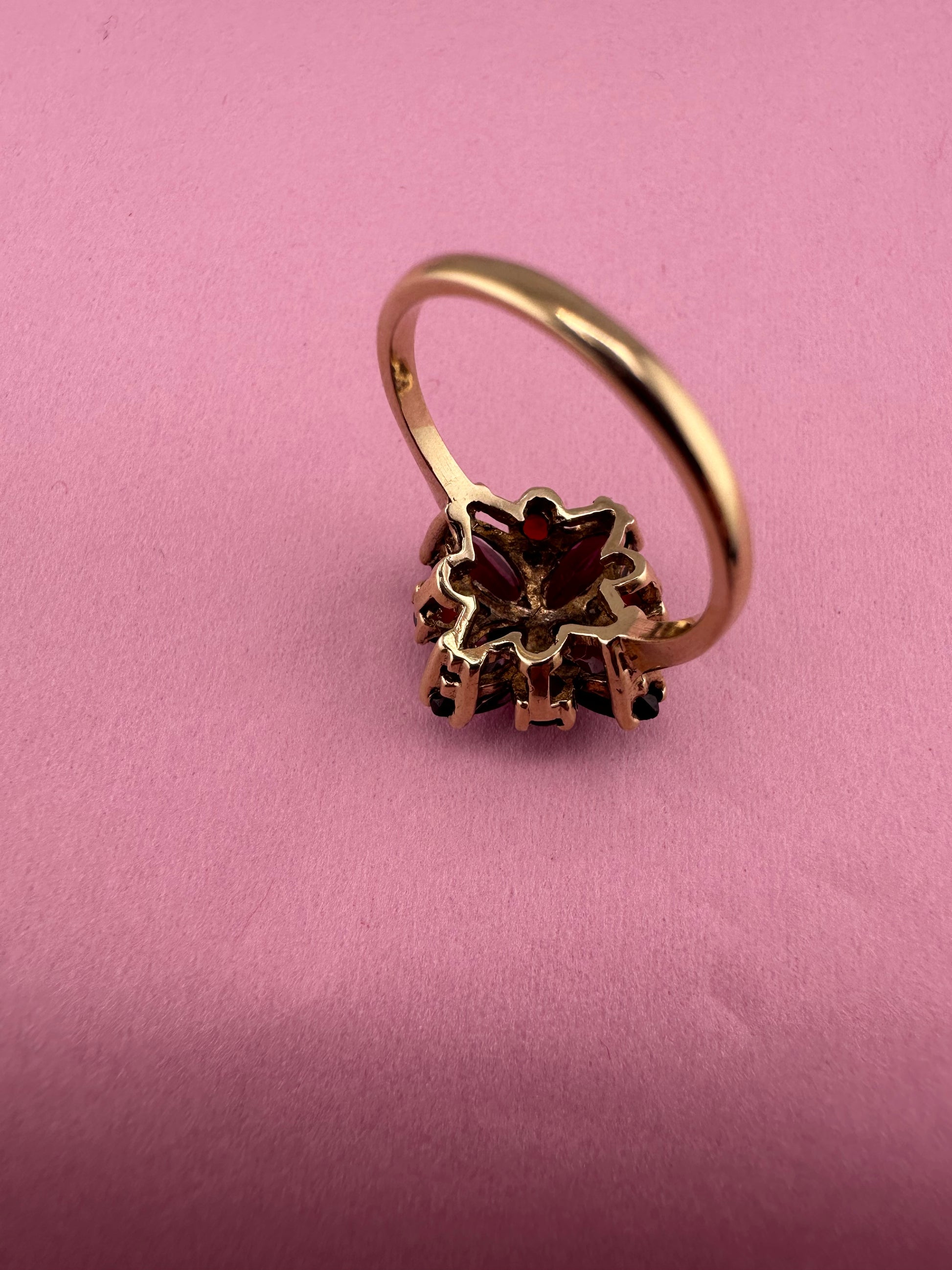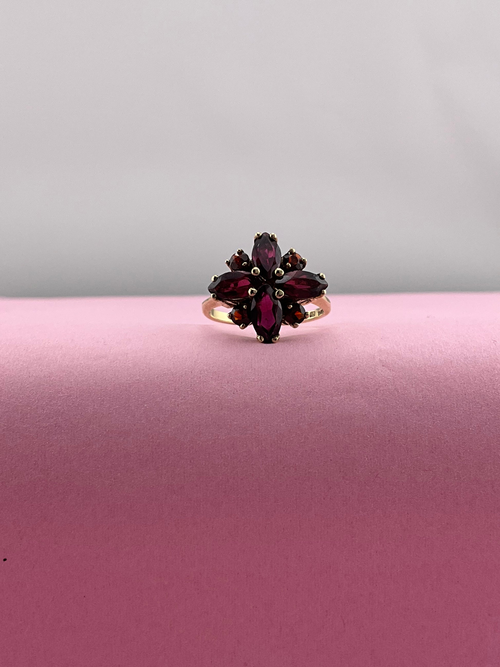 Vintage 9ct Gold Garnet cluster ring