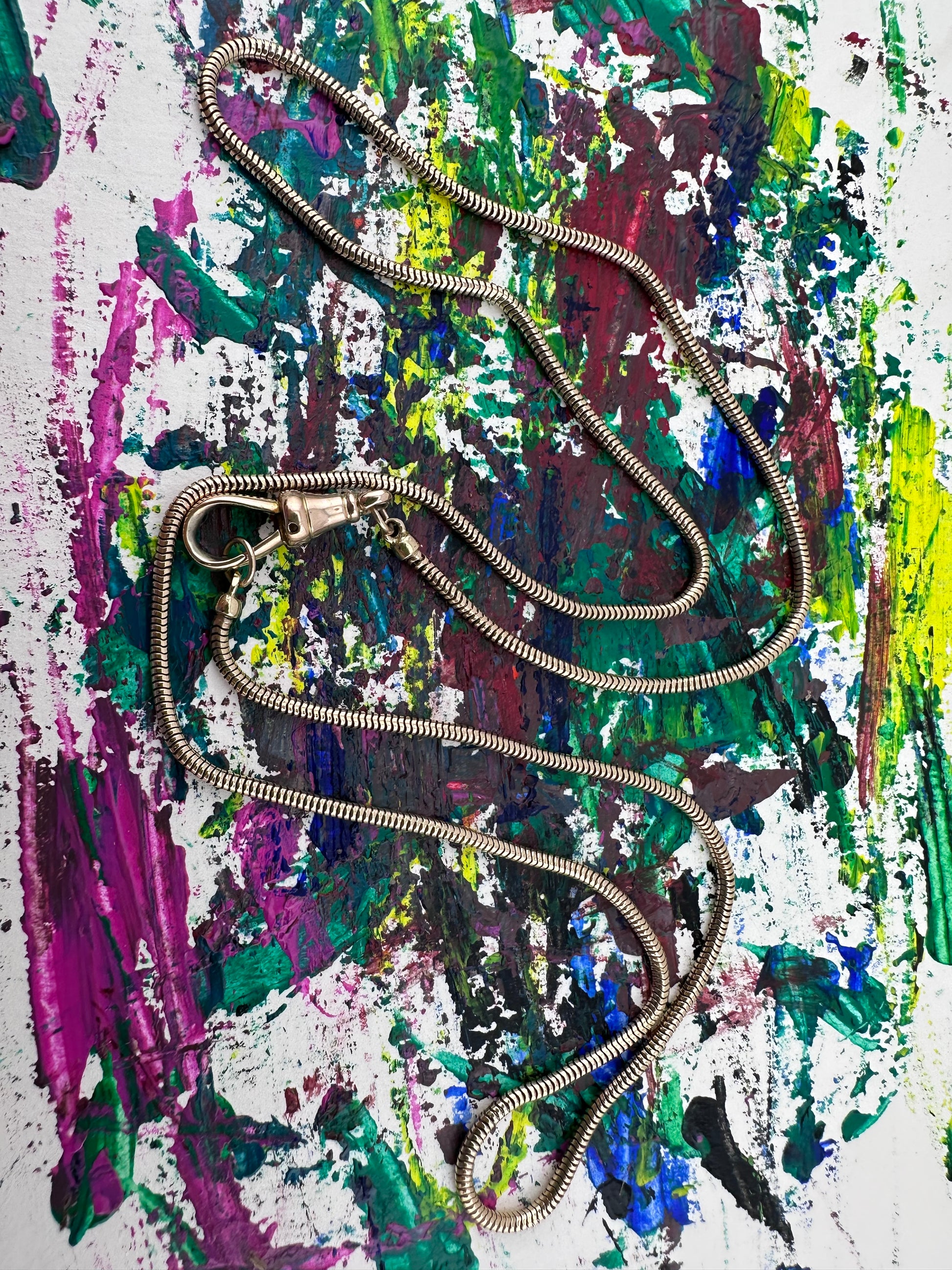 Who doesn’t love a snake? The slinkiness, the feel and the look just adds up to make the perfect chain. She’s so shiny too. Add the dog clip and she’s the definition of perfection. Hang your charms and pendants and add it to your neck stack, it’ll look so good.