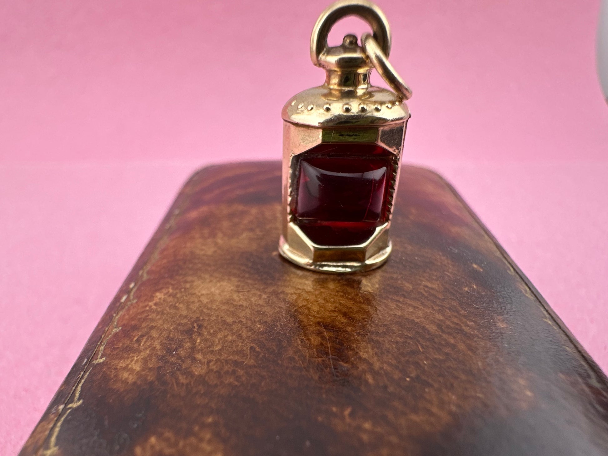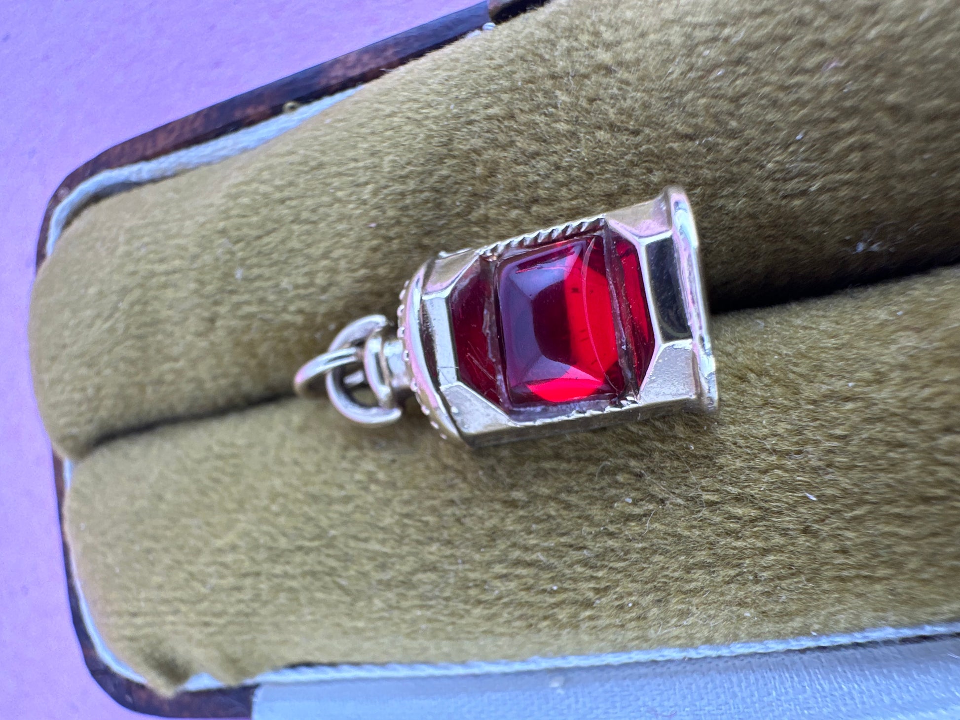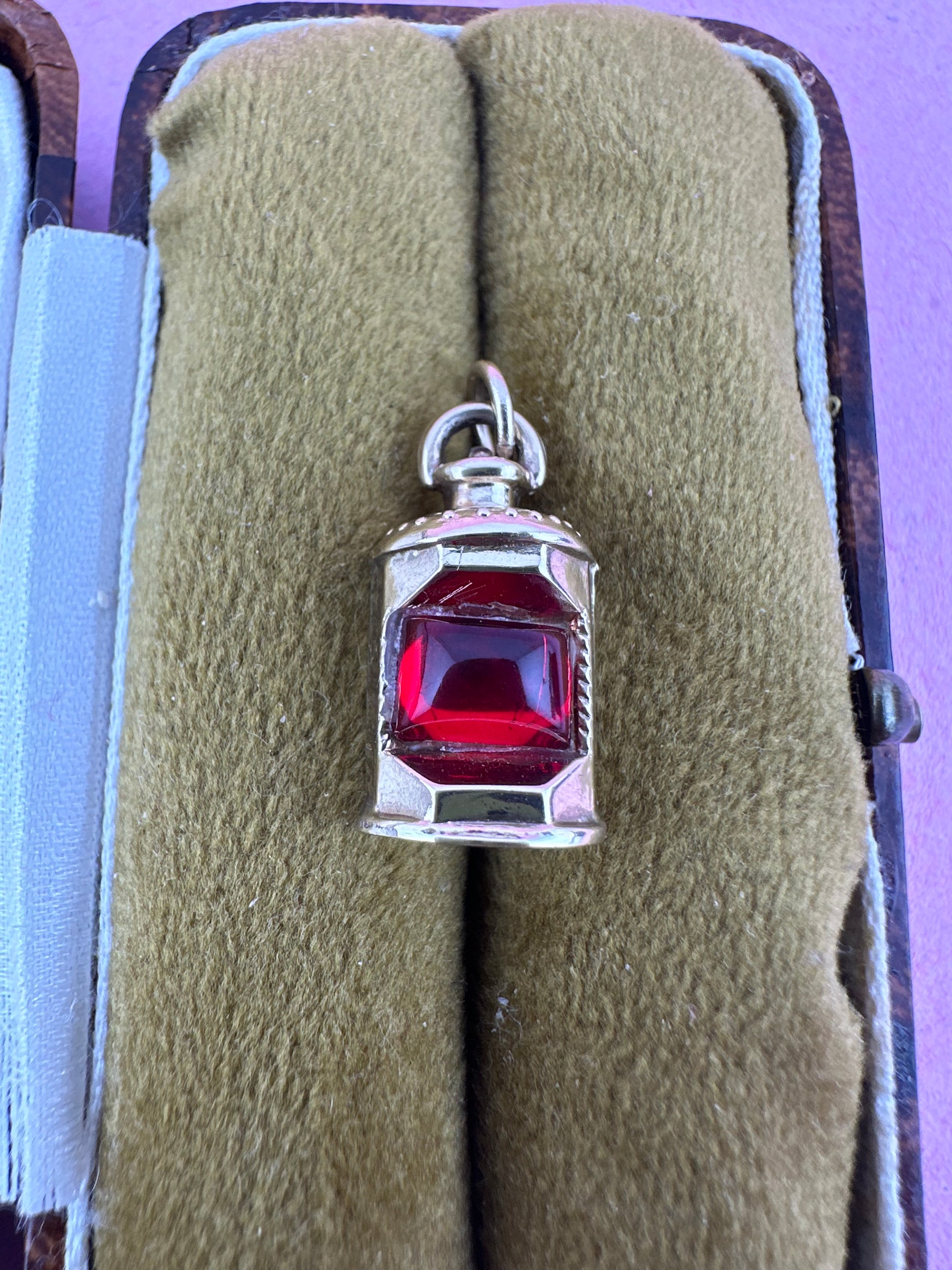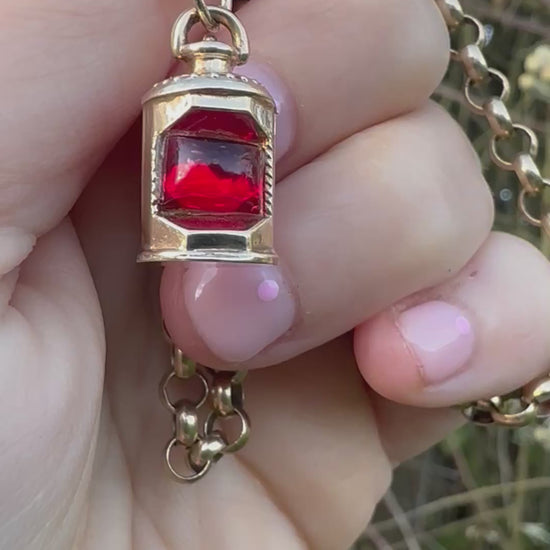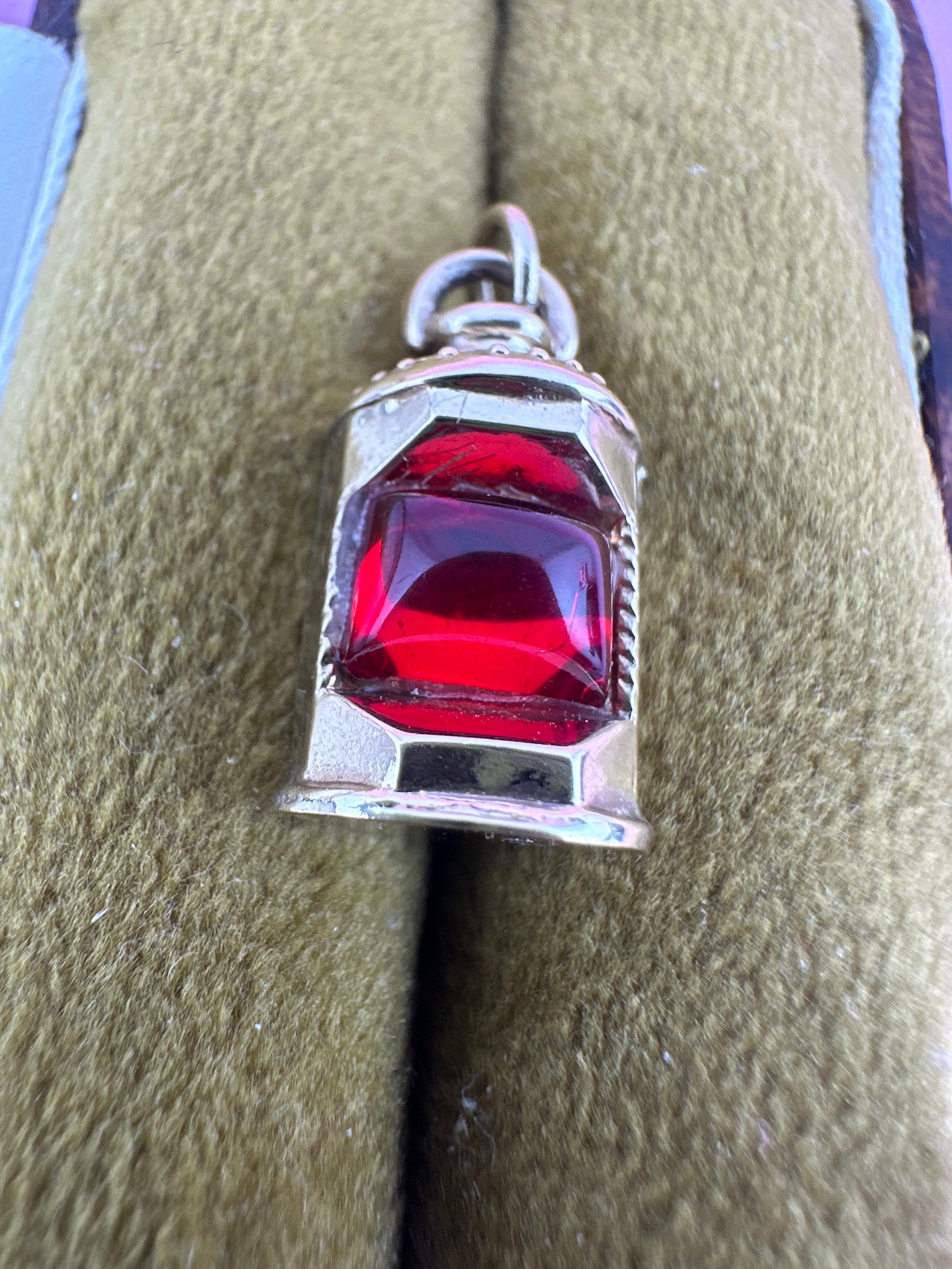 Vintage 9ct Lantern charm with red paste stone