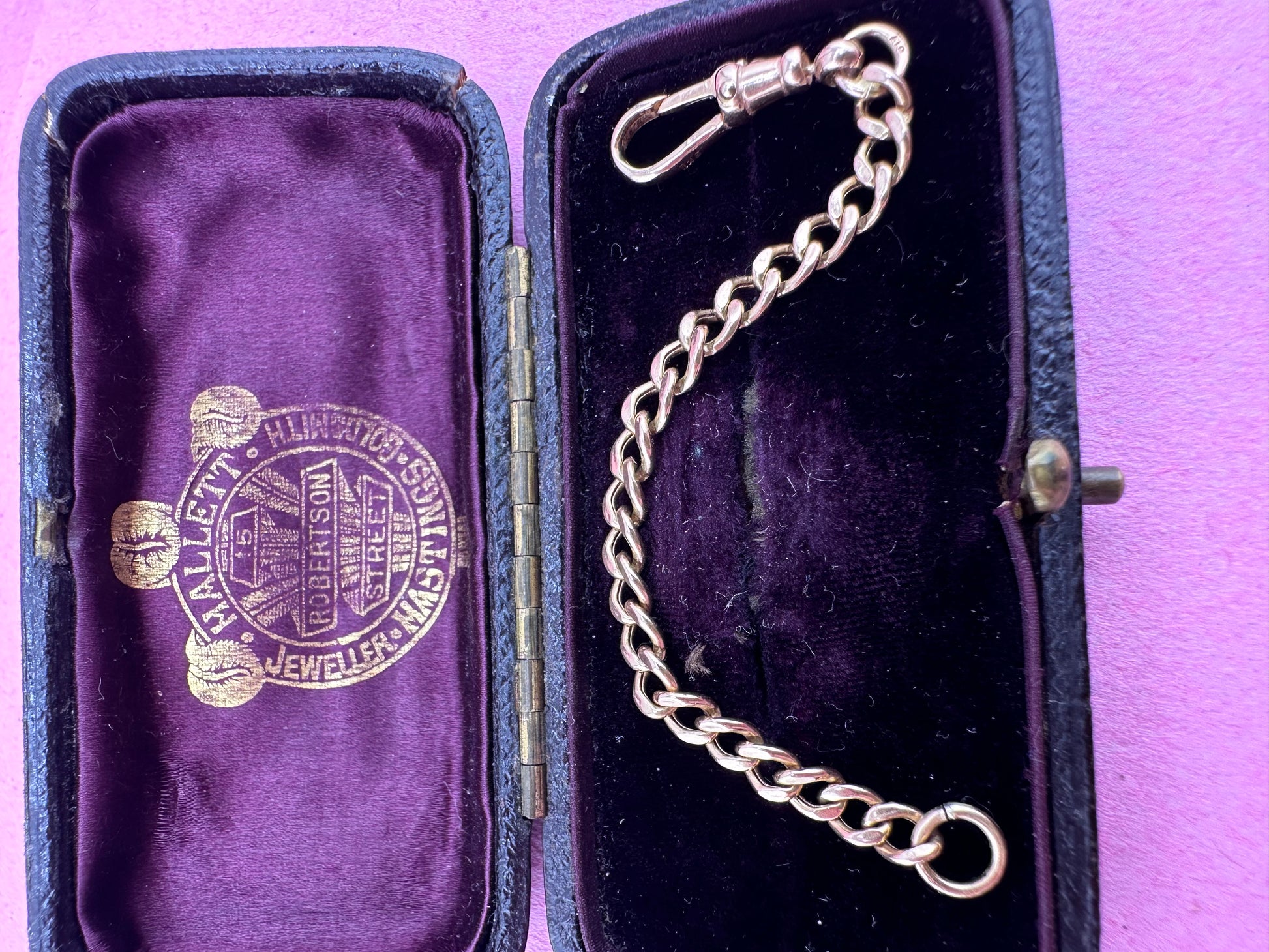 Hallmarks- 9ct on the dogclip. ELd makers on the chain.