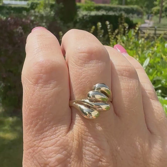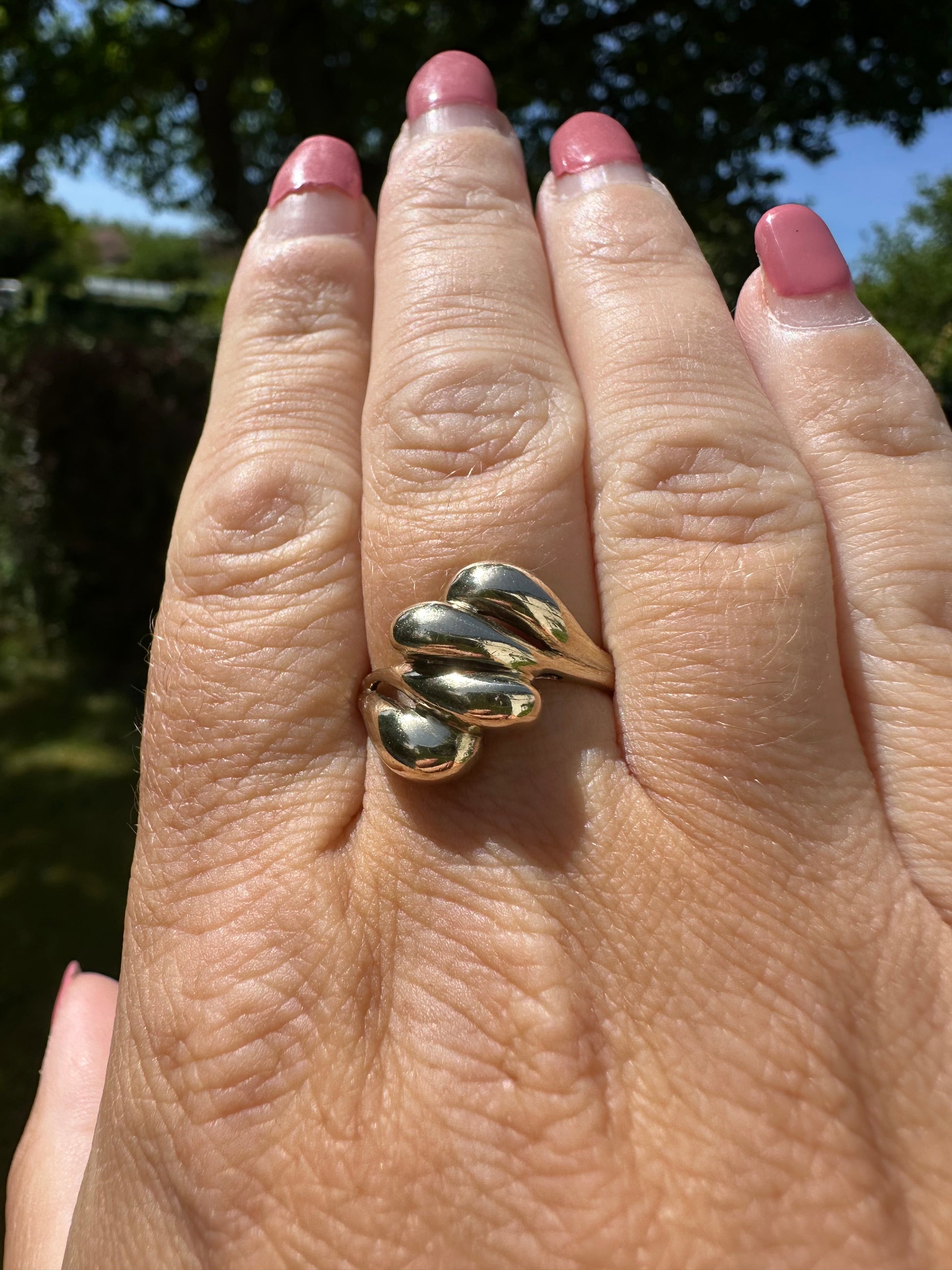 This ring is such an amazing statement piece. The croissant shape is so cool and I love how puffy it is. It has an amazing high profile. It looks so good on and has fab finger coverage.