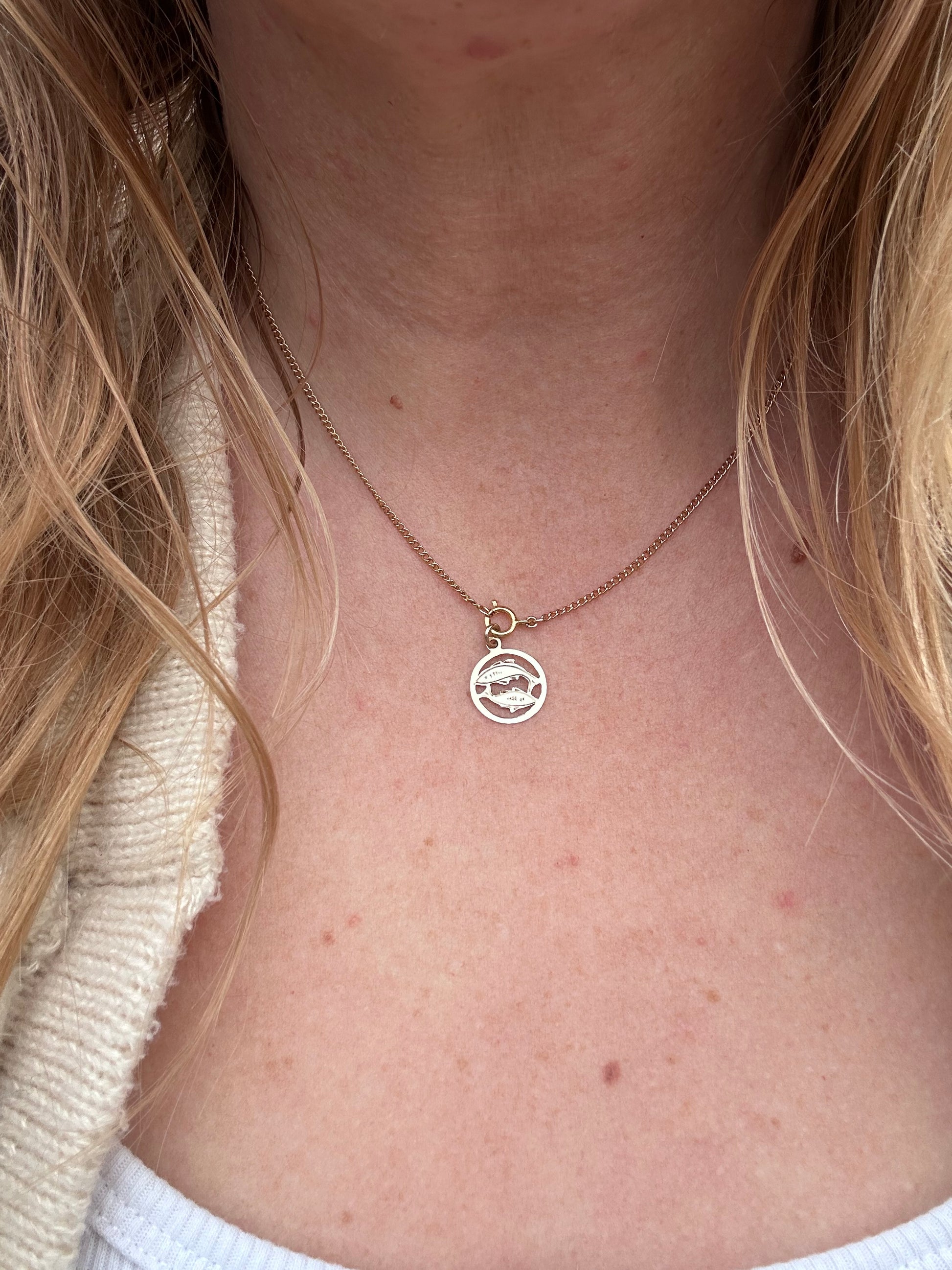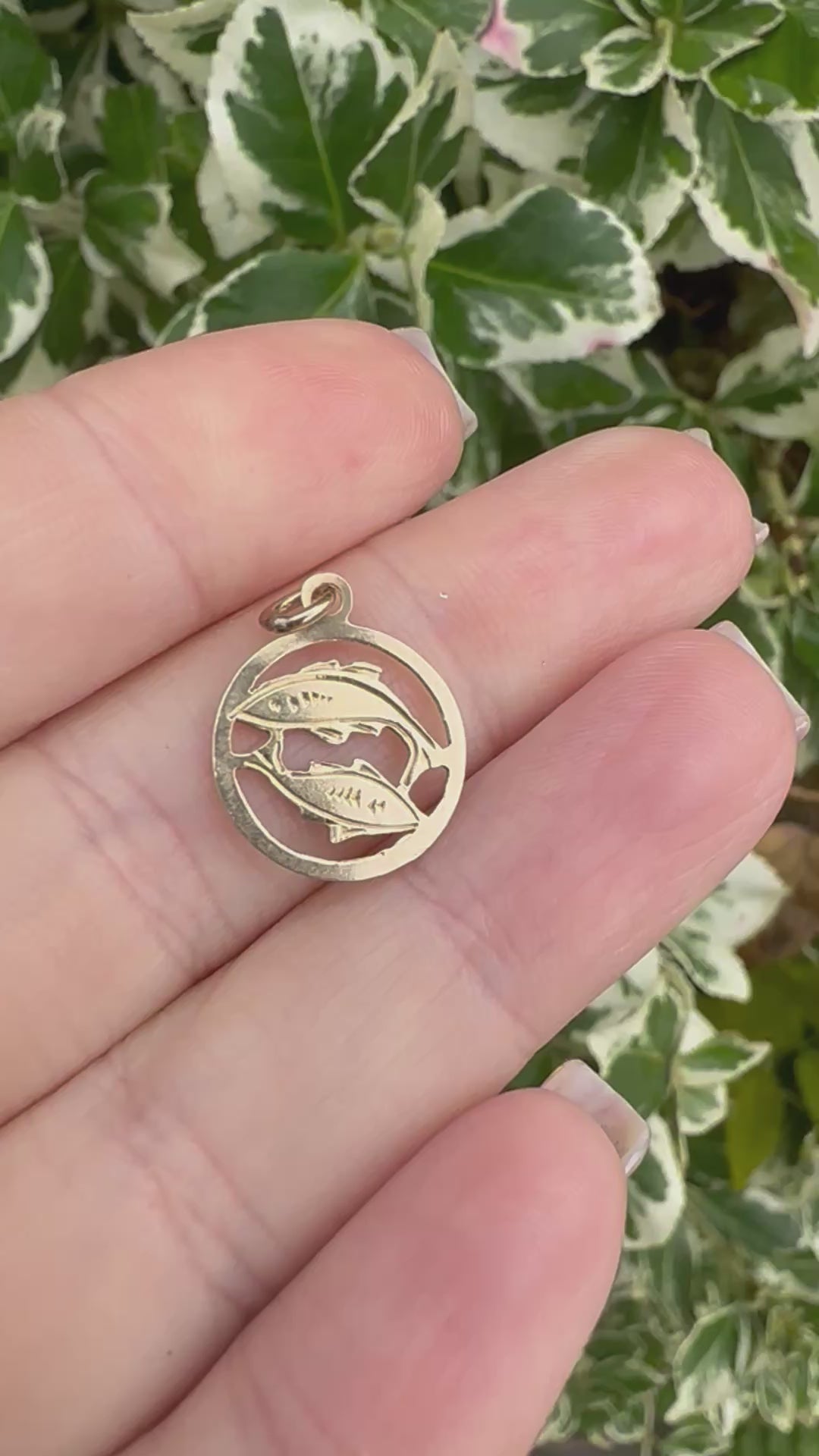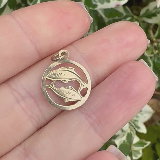 Cute Pisces charm. This is a great layering charm with its round flat shape it’ll sit amazingly in a charm jumble. I love how the little fishes have been cut out of the disc and the addition of the sweet engravings makes it a lovely little piece.