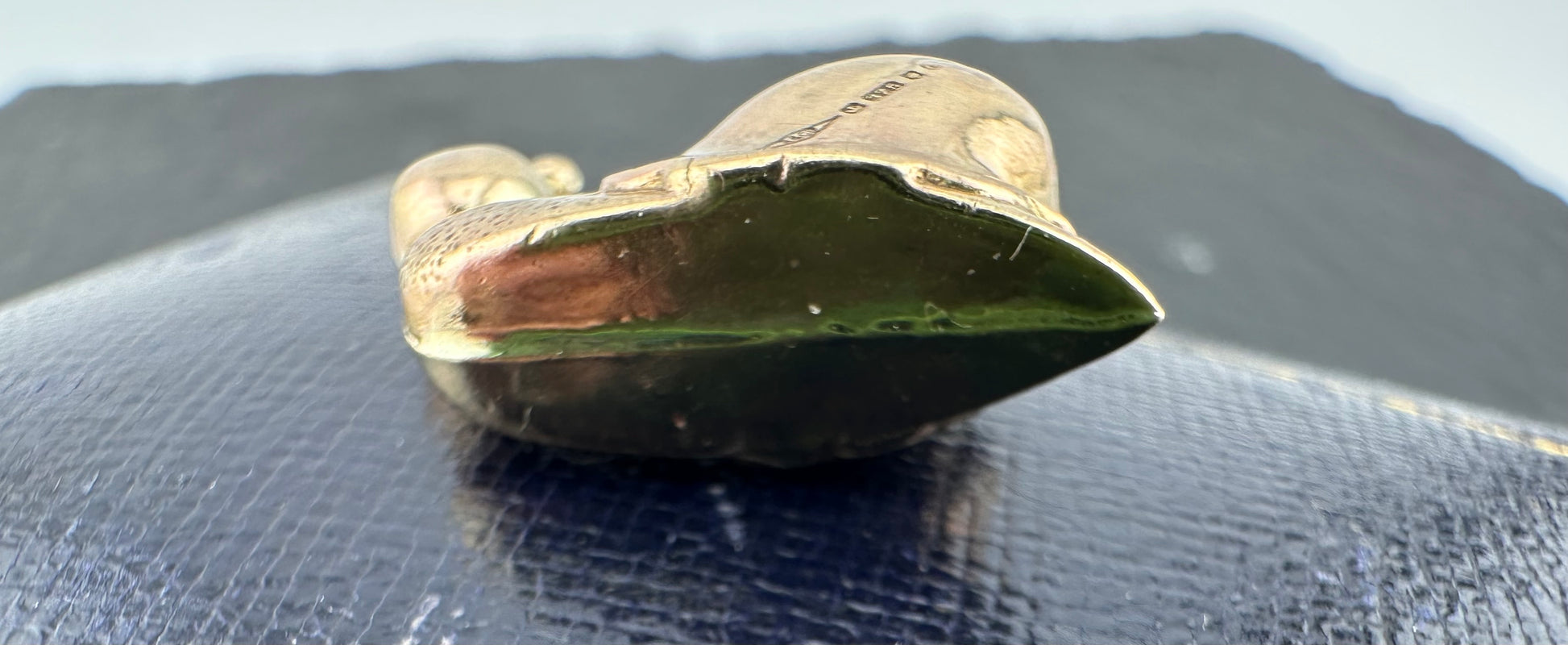This charm is in good condition, there is a slight crack to the back, but this has been caused by having its hallmarks stamped in so has been there since it was made. It has been cleaned and polished.