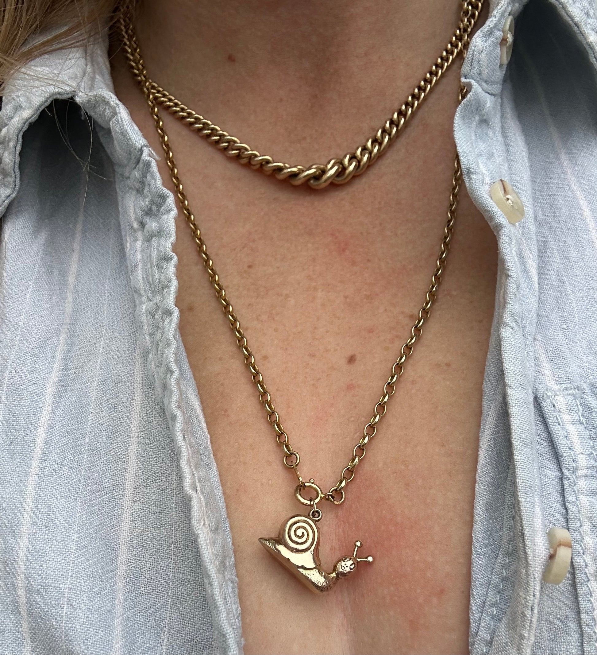 How good is this Snail charm? I think it’s the coolest piece, I love the cartoon style face and the texture. The size of the charm is amazing too, it’s much larger than most charms and will definitely stand out in your neck stack.