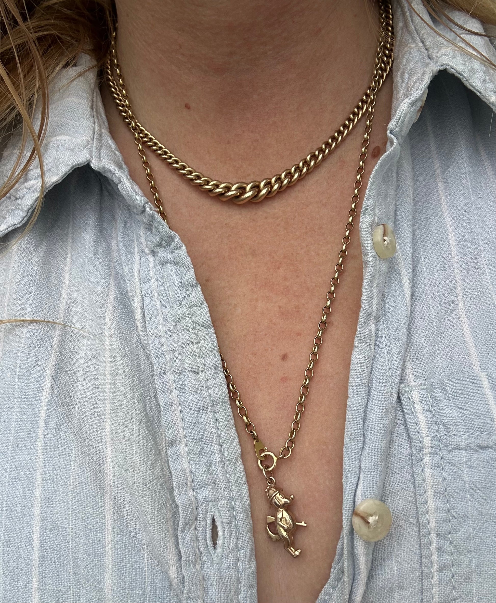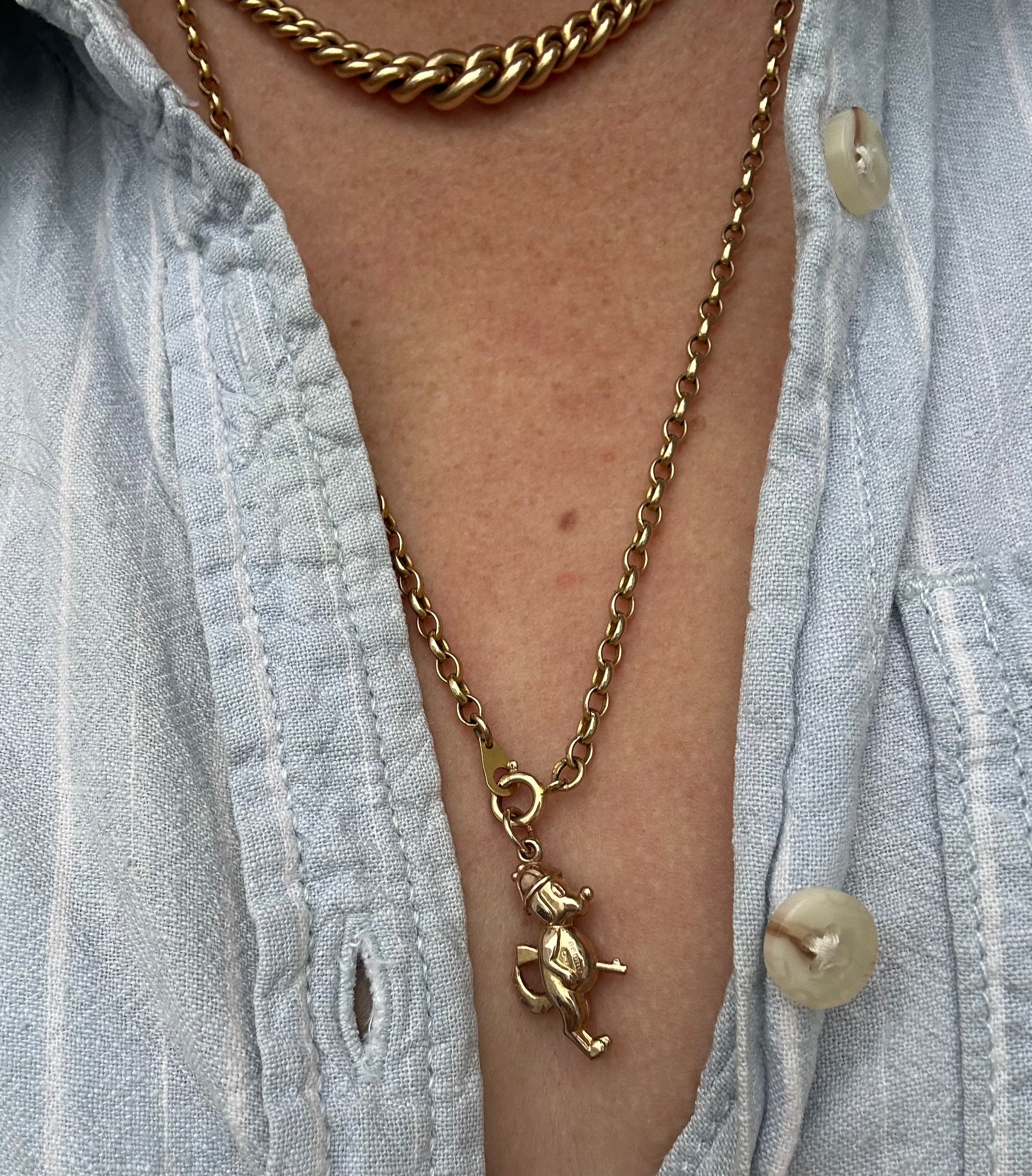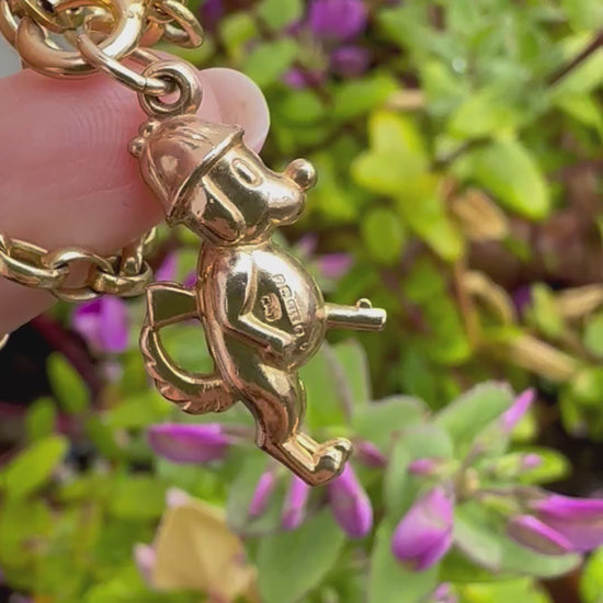 I believe this charm is of Snoopy the dog. He is holding a rifle and wearing a hard hat and very much standing to attention. He has lots of great detailing to him and would make such a fab addition to a neck stack.