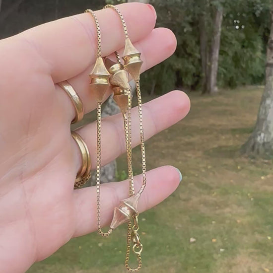 Insanely beautiful chain! If you love a station chain but but want it unusually fancy then here’s the chain for you. It will look amazing as a top layer in your neck stack adding some serious texture and profile. The rhombus like stations are fluted and have this amazing florentined texture it’s made so wonderfully. In between the stations is a box chain.