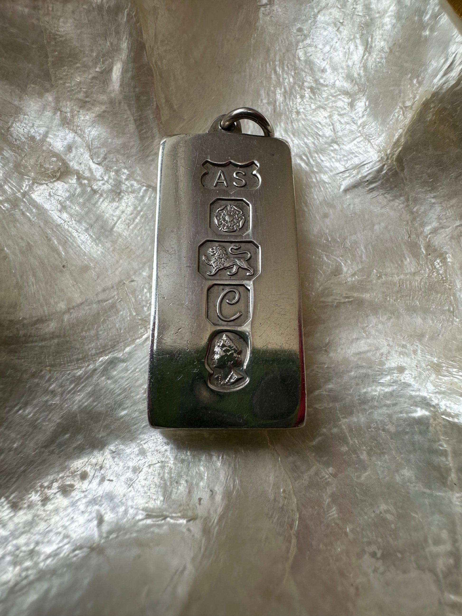 If you’re looking for a matching pair of silver ingots I have two of this available (at time of posting). Silver ingots are such cool pieces to collect, they are also a great way of buying silver if you’re interested in that as a way of investing. This ingot is heavy at 31.46g but wearable on a nice chunky chain. This one (and its matching pair) have Sheffield assay stamps which I have seen less often. The last stamp at the bottom of Queen Elizabeth II is there to represent her Silver Jubilee which happened in 1977, the date of this ingot.