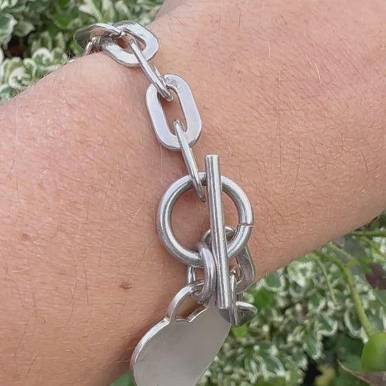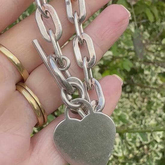 Vintage Sterling Silver paperclip bracelet with heart toggle